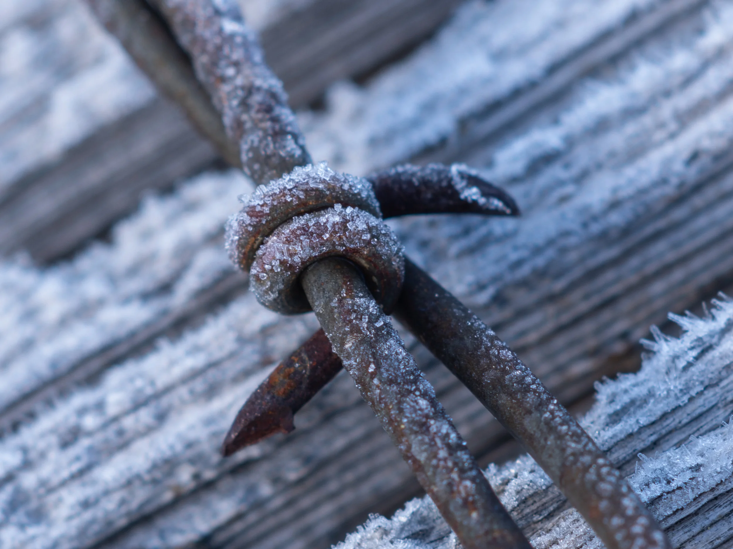 Close up crop of above barb. Frost crystals look more like salt crystals.